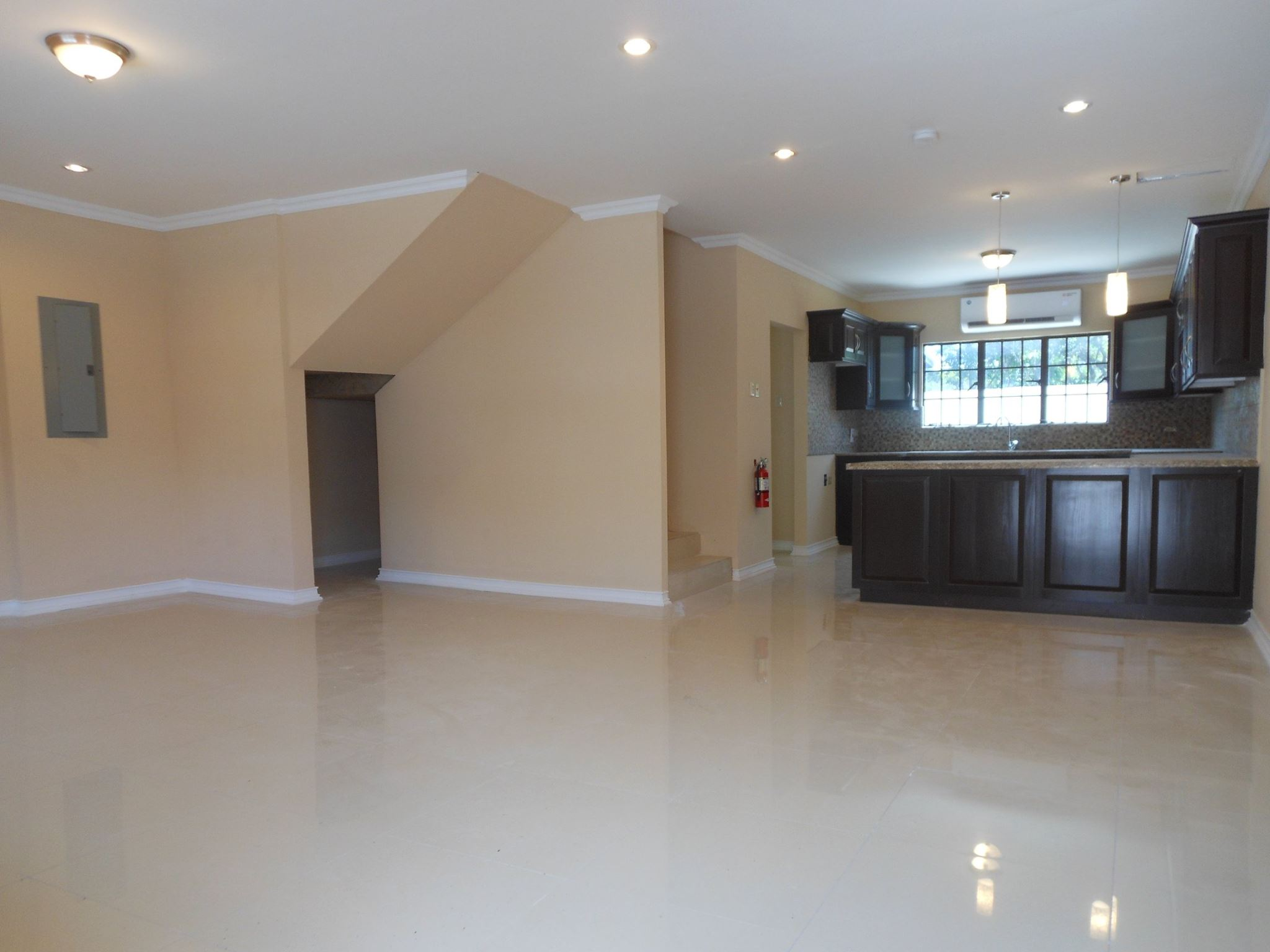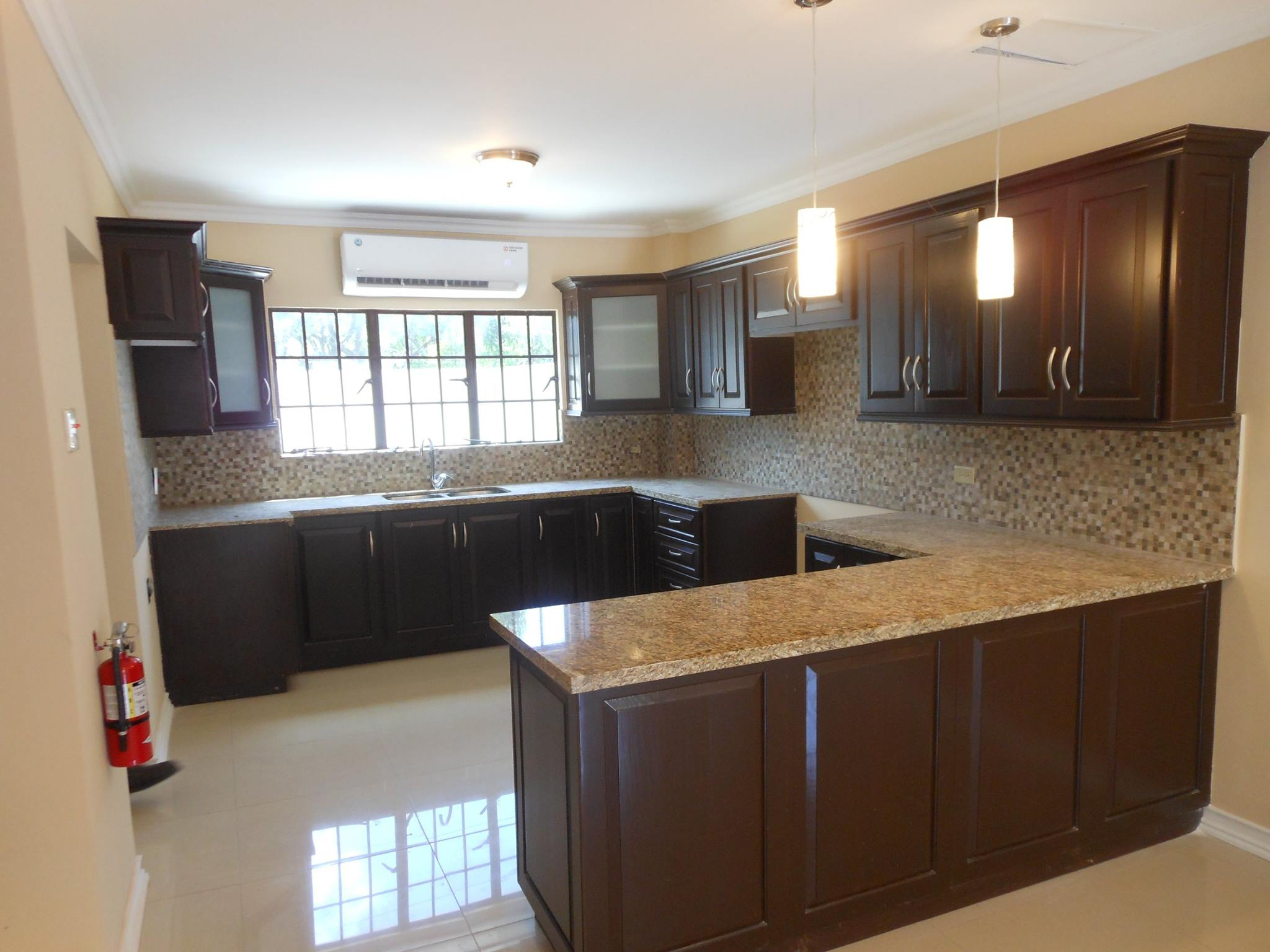 fully air-conditioning, water tank, cupboards upper and lower with granite countertop in the kitchen, access to pool and gym.